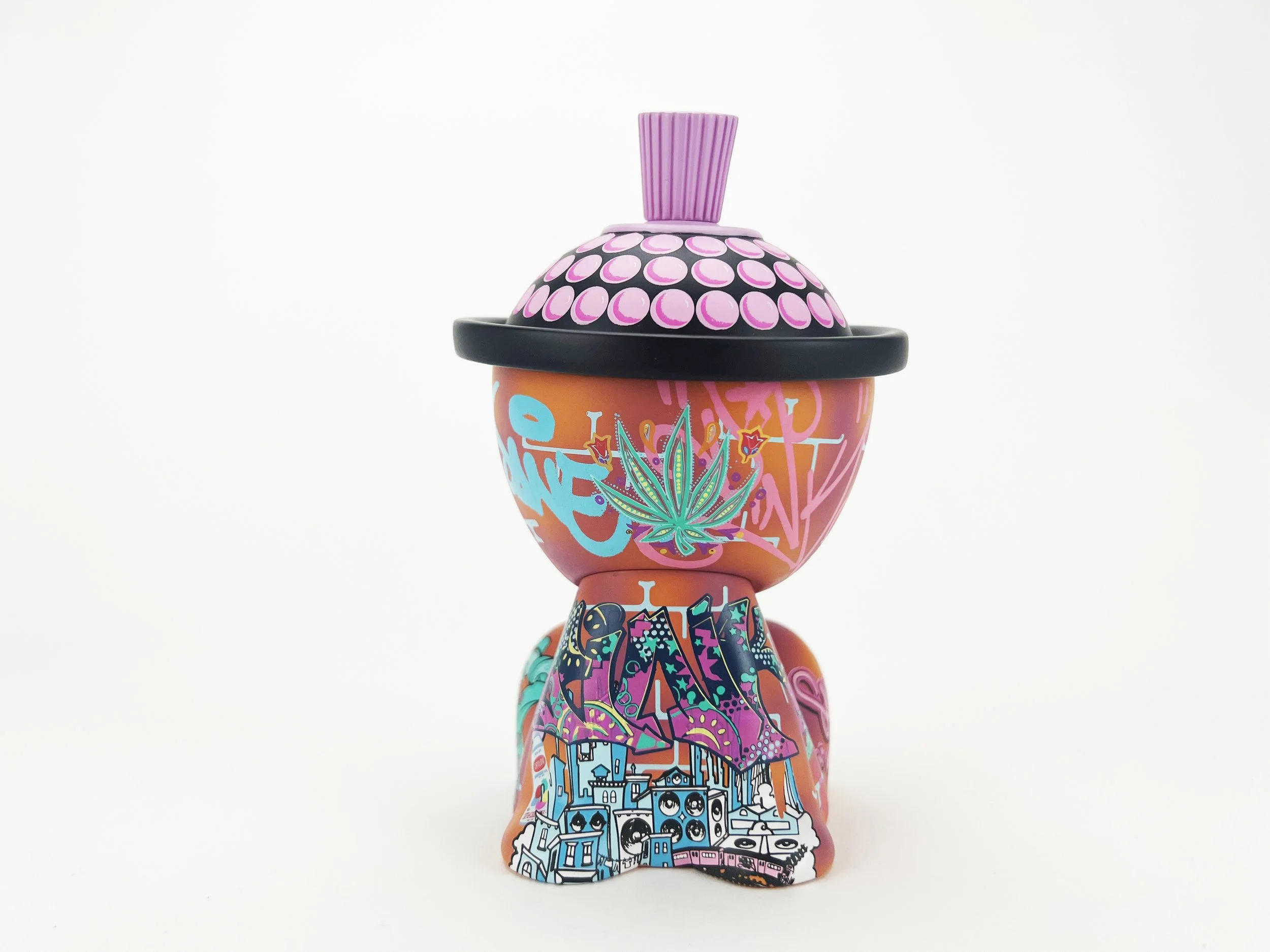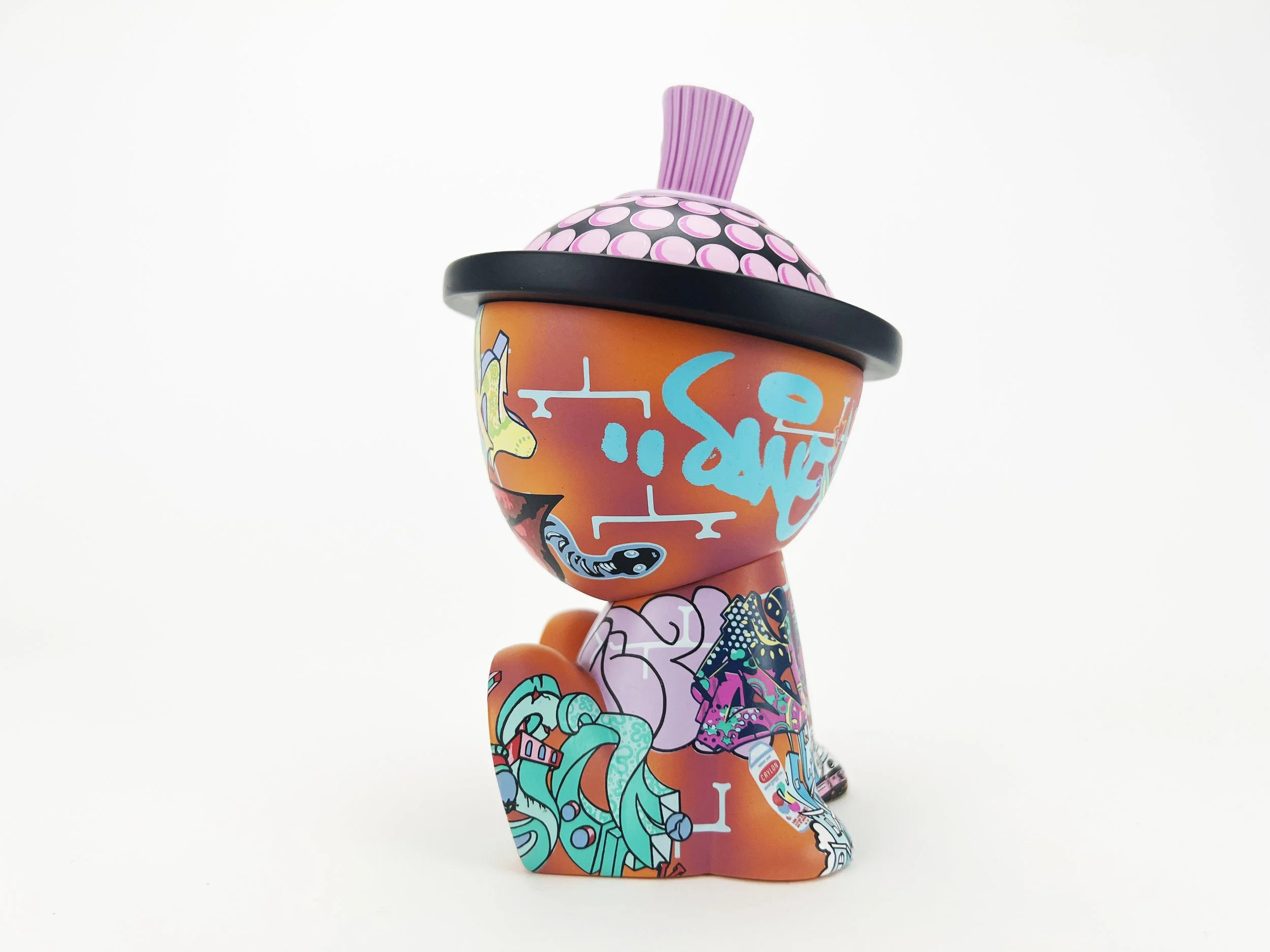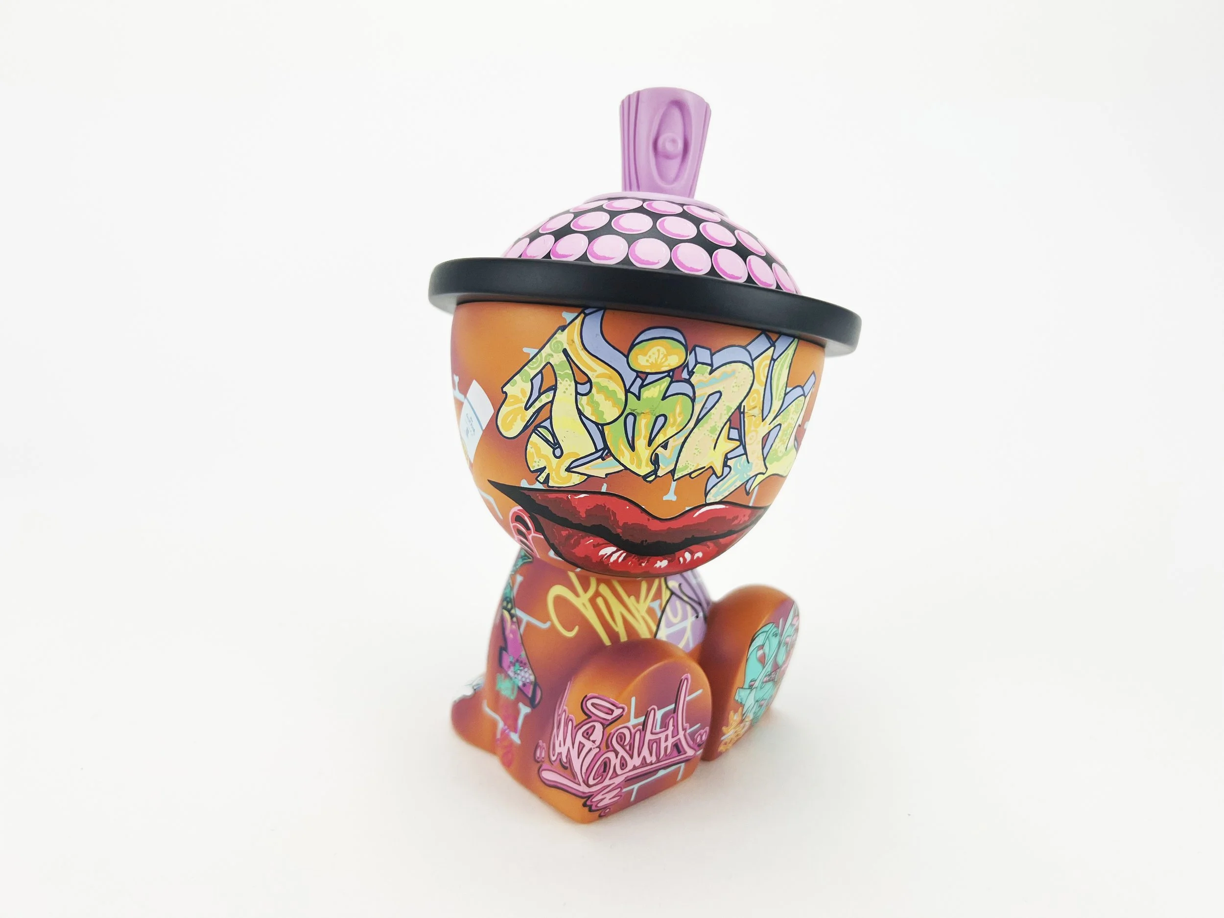 Lady Pink put her own bold feminist symbolic style on the Clutter’s Canbot vinyl figure, originally created by UK-based street artist Czee13. Pink’s Canbot sits at 5.5”, adorned with large red lips and the artist’s rendition of a “Pussy Hat,” the knit beanie made popular by the 2017 Women’s March. The Lady Pink Canbot comes with the signature Canbot rattle.