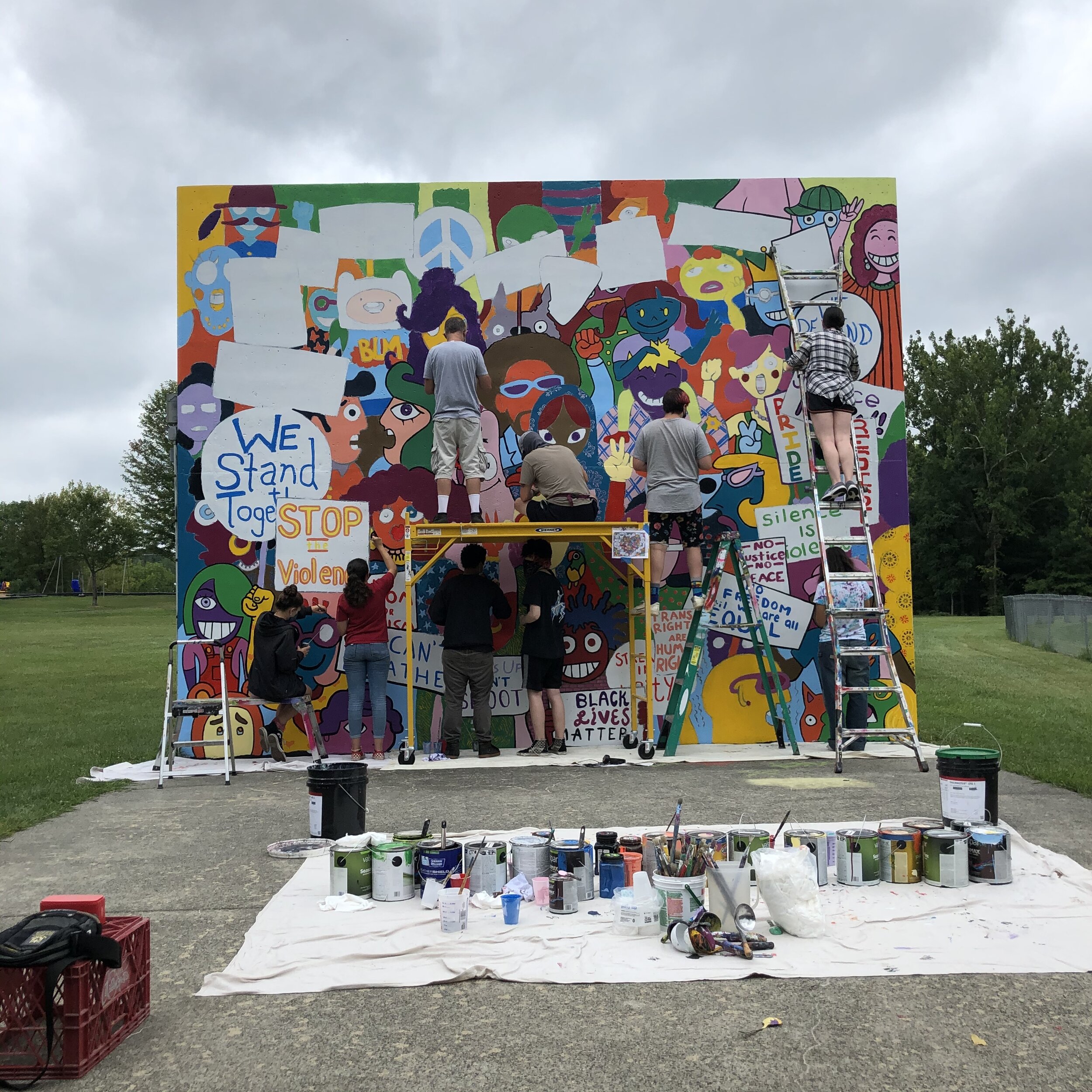 Completed alongside roughly a dozen student from New Paltz High School. The students decided on the topic of the mural together.
