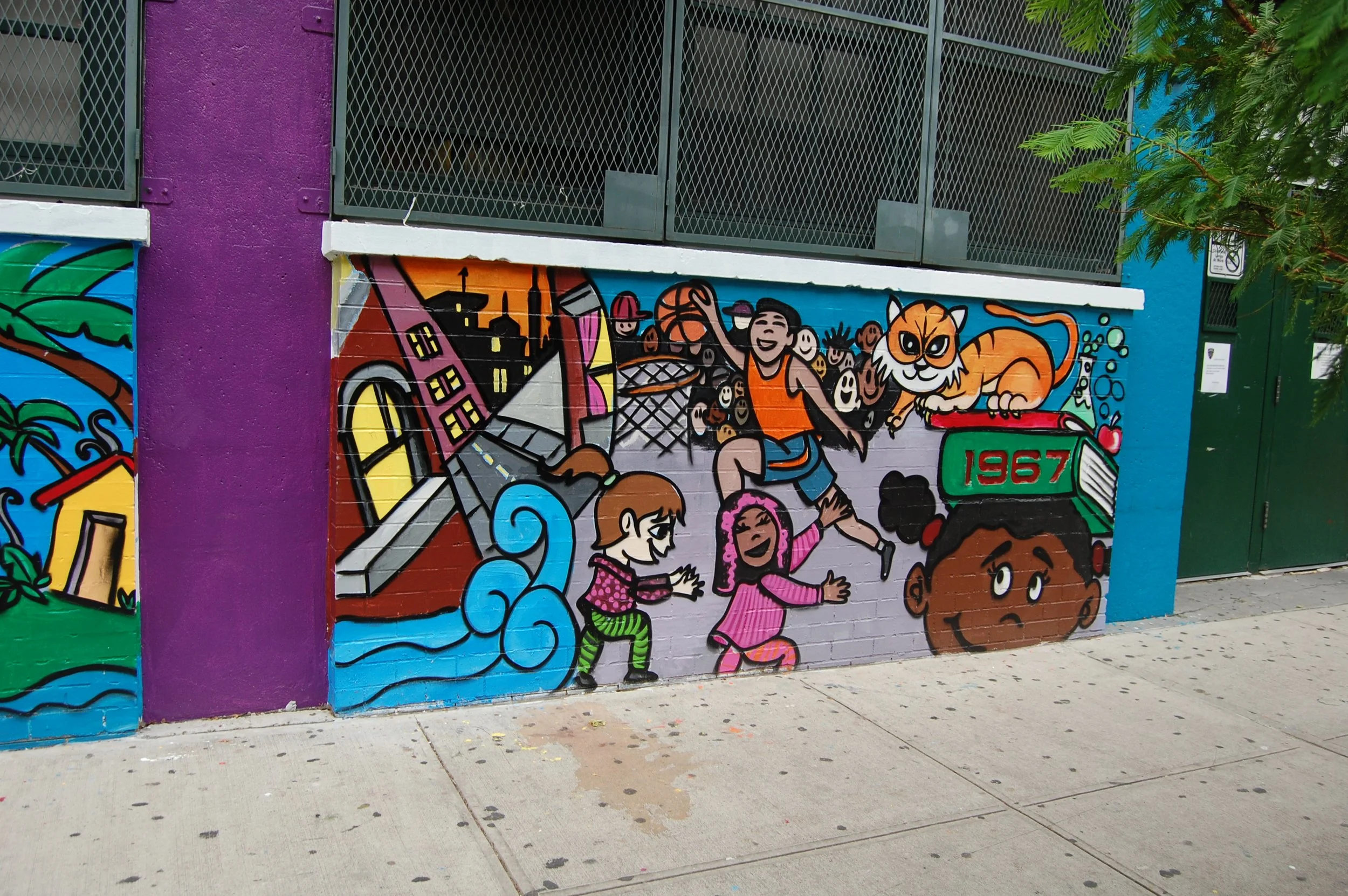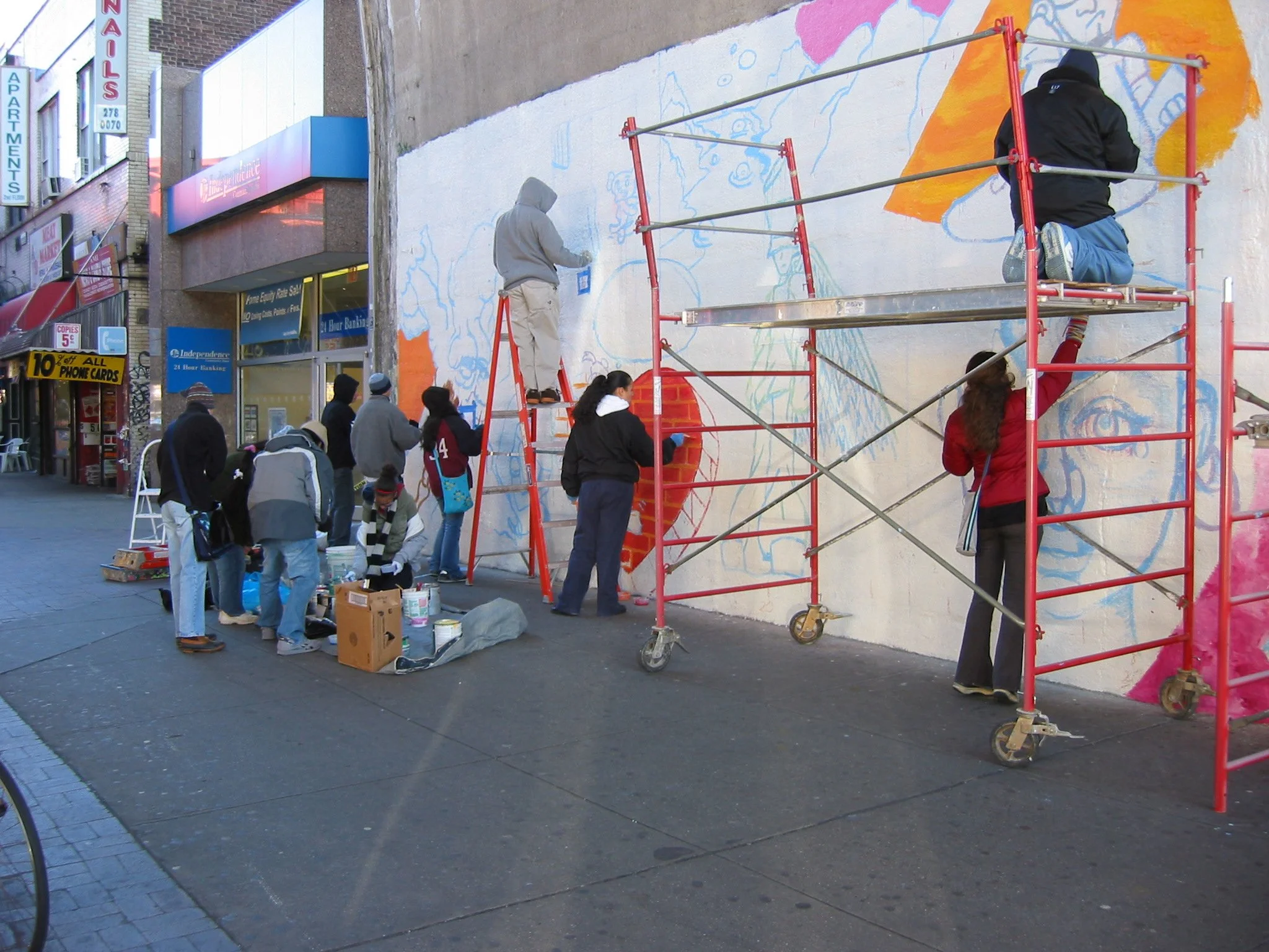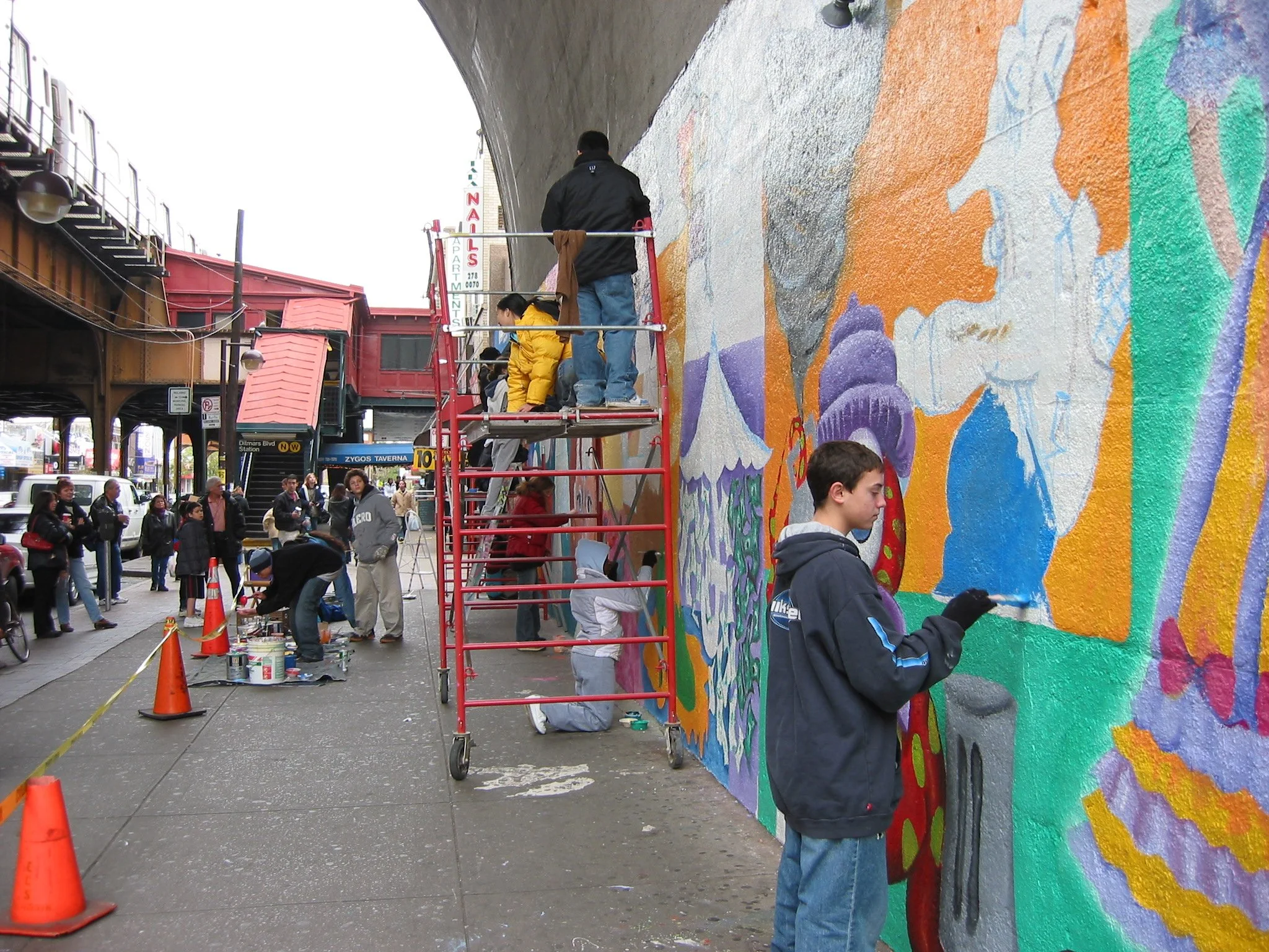 Over the years, Lady Pink collaborates with schools across New York, including Frank Sinatra School of the Arts (FSSA) and organizations such as Project Sunshine to lead student mural and painting workshops that inspire creativity, teamwork, and pride through public art. These projects were made possible through the generous support of The Martin Wong Foundation.